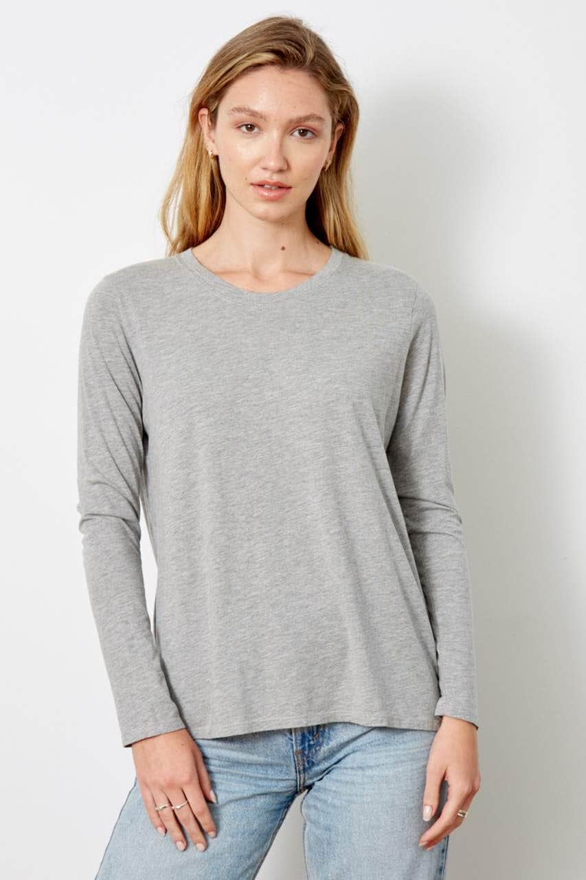 Your essential long sleeve tee! The Suzanne features a loose, relaxed fit with a crew neck and side split hem. A year-round necessity, the Suzanne is the perfect lightweight long sleeve tee.