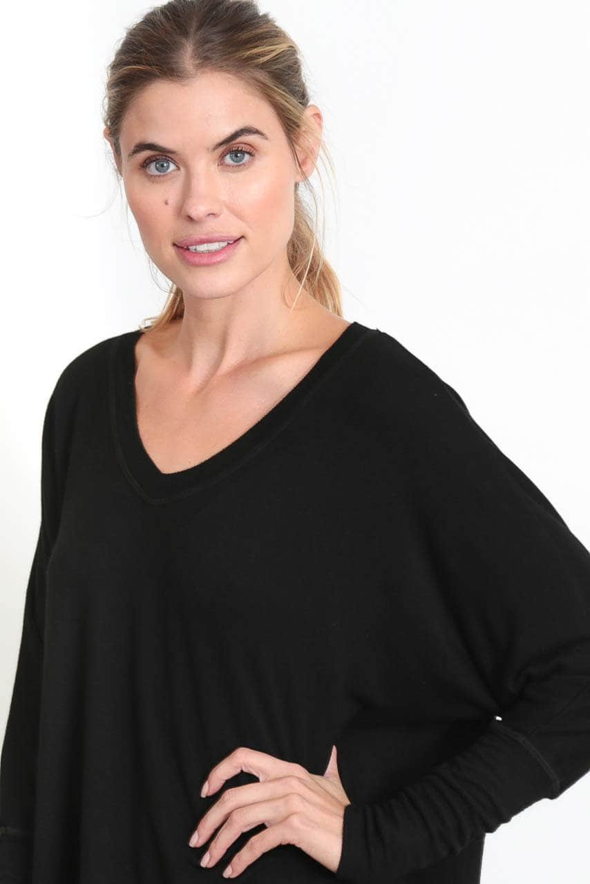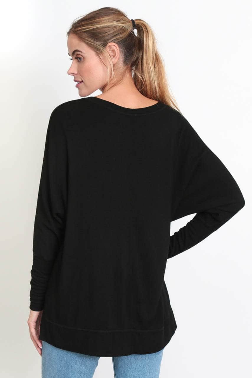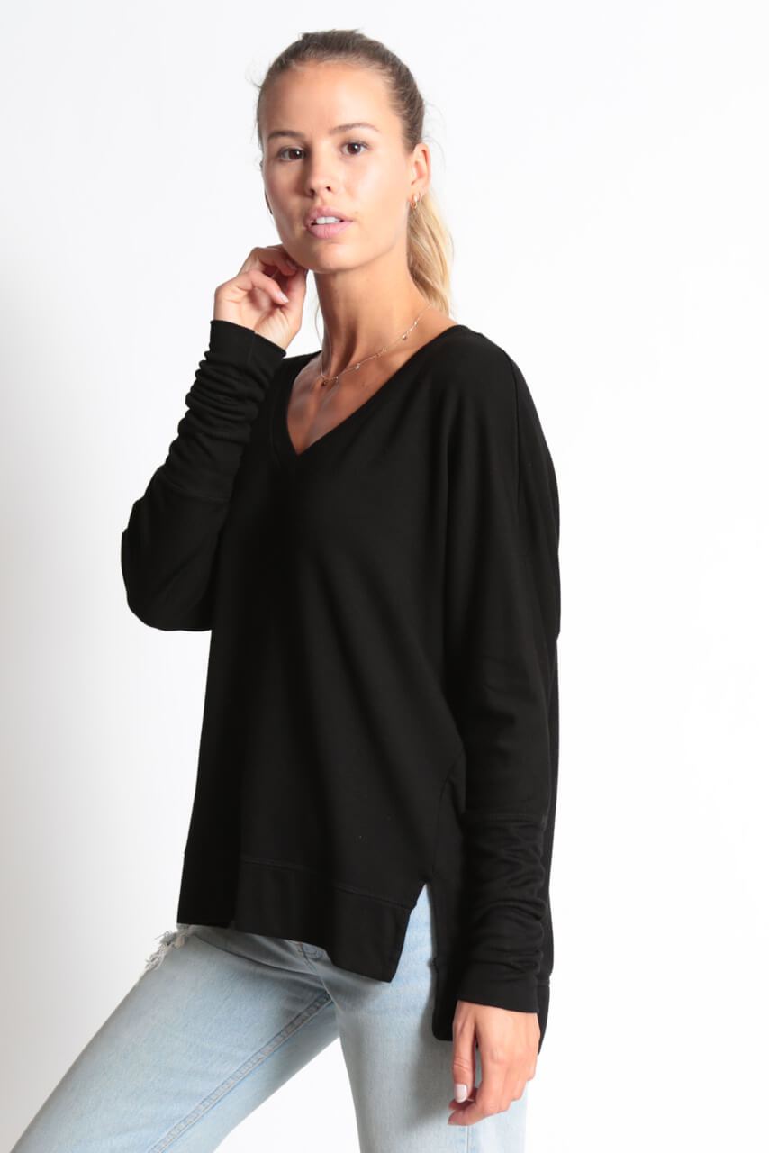 The Carrie - Relaxed V-Neck Sweater - Black Sand