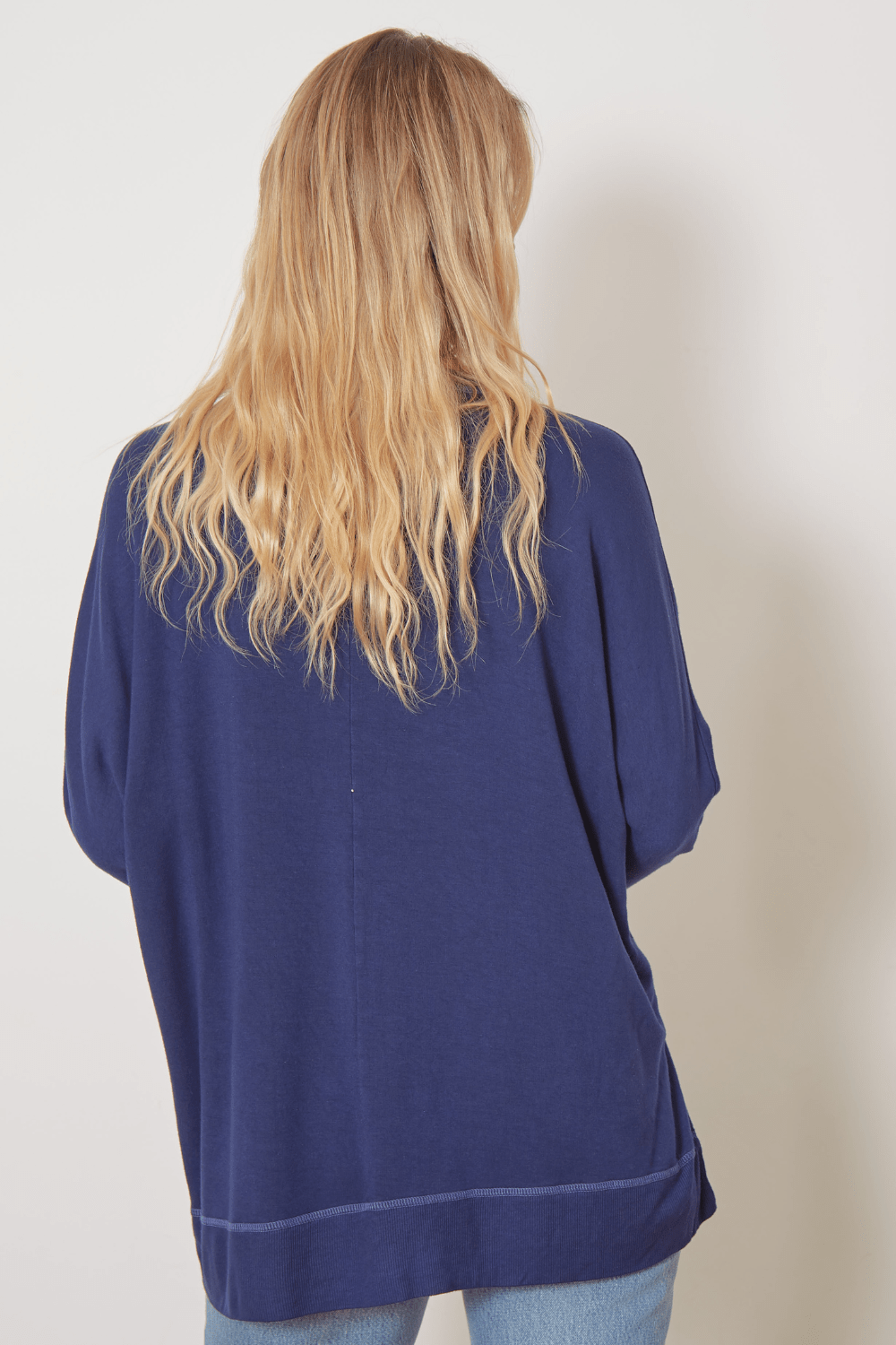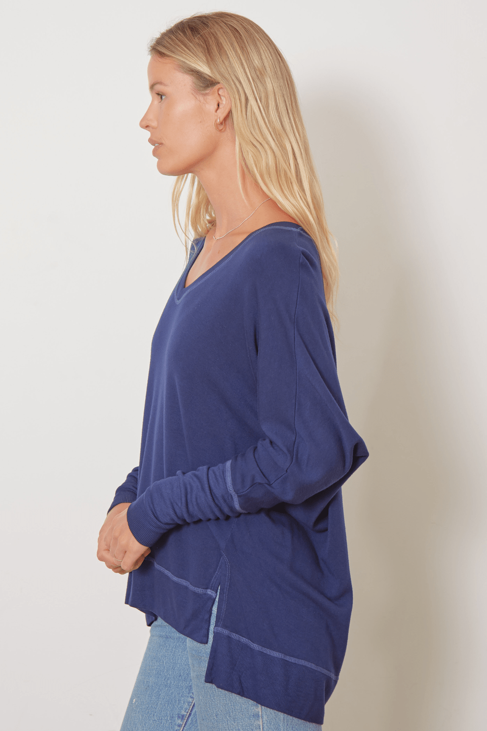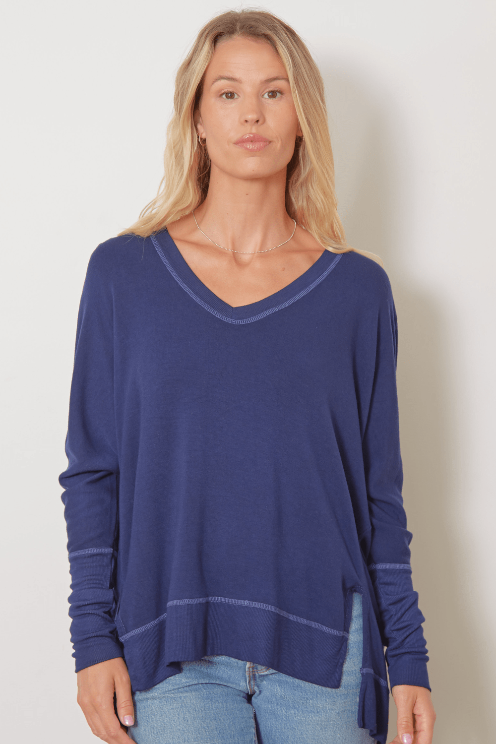 The Carrie - Relaxed V-Neck Sweater - Purple Blue
